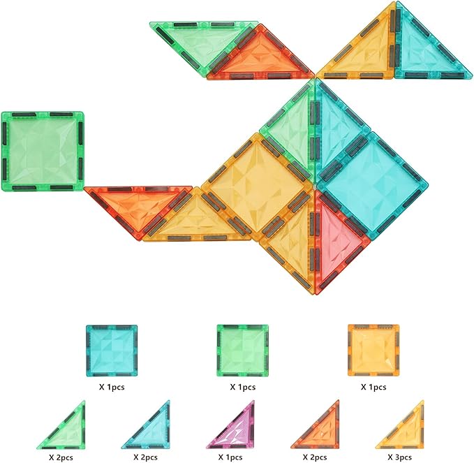 - Endless Building Possibilities - With various shapes and colors,These magnetic tiles help kids develop construction skills, Start with simple 2D patterns and progress to complex 3D models with growing up.It’s a hands-on experience that turns every playtime into a mini engineering adventure