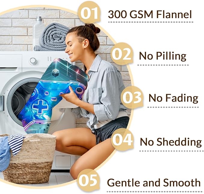 - Flannel Material Blanket: Our cute gamepad personalized blanket is made from soft flannel for comfort and coziness. Cute personalized gaming blanket is made with anti-pilling fabric. Cute plush blankets are wrinkled and fade resistance. Our fuzzy blanket throw will last you for years