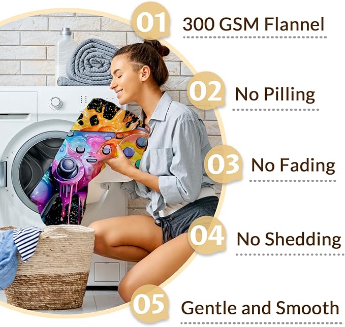 - Flannel Material Blanket: Our cute gamepad personalized blanket is made from soft flannel for comfort and coziness. Cute personalized gaming blanket is made with anti-pilling fabric. Cute plush blankets are wrinkled and fade resistance. Our fuzzy blanket throw will last you for years