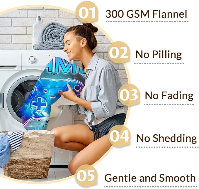 - Flannel Material Blanket: Our cute gamepad personalized blanket is made from soft flannel for comfort and coziness. Cute personalized gaming blanket is made with anti-pilling fabric. Cute plush blankets are wrinkled and fade resistance. Our fuzzy blanket throw will last you for years