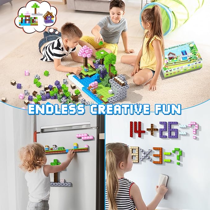 - STEM Sensory Magnet Toys Offer Endless Creative Fun --- This toy enhances the pretend play experience and offers STEM academic adventures. Magnetic cubes provide the flexibility to build unique and creative structures, and can be combined with other 1 inch magnetic building blocks to build your own large 3D themed world. In addition, the strong magnetic force allows children to create and count on the iron fridge or blackboard. A drawstring storage bag can easily hold all the blocks. Whether at home, school, or traveling, our toy is the ideal play companion for your kids ages 4-8 8-12.