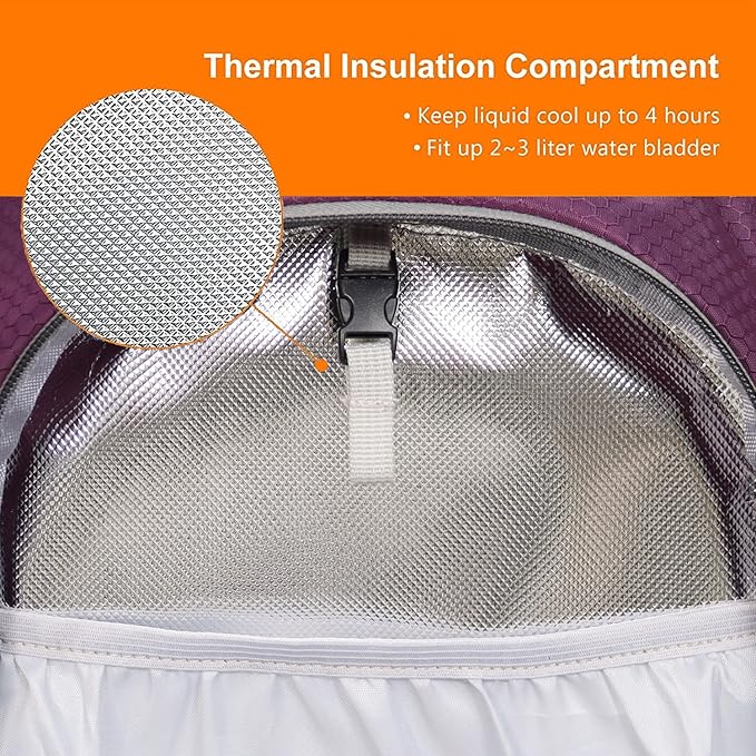 - ❤【INSULATED AND WELL PADDED】: With an insulated pocket inside, this water bag keeps water nice and cool for 2 to 7 hours even in the heat. With mesh padding for relieving fatigue & ventilation, this water backpack for hiking keeps your pack cool and your back dry.