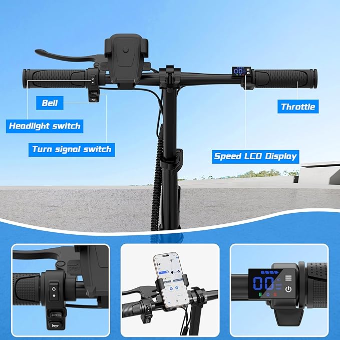 - [POWERFUL CONSOLE ] Premium technology with smart phone app which can be control LCD display, cruise system, bluetooth, speed mode, especially the function of scooter locked to avoid the electric scooter lost. Perfect for travel tools.