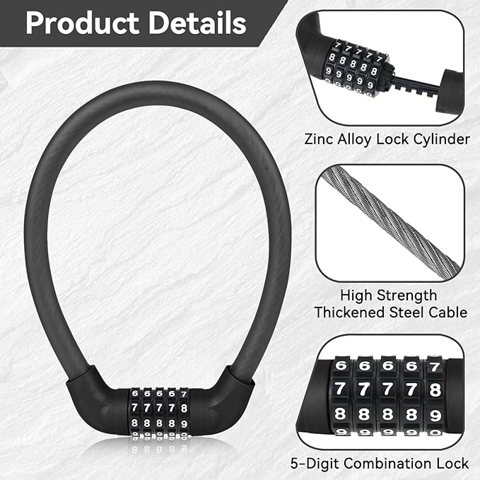 - MULTI-PURPOSE: Bicycle combination lock Ideal for bicycles, skateboards, scooter, sports equipment, fences, tools, tool boxes cable lock accessories.