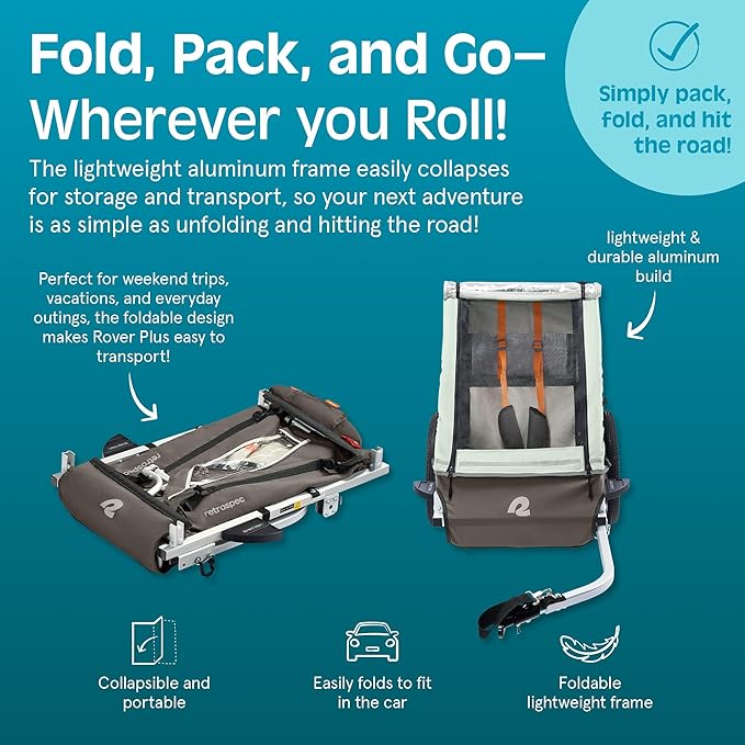 - FOLDABLE ALUMINUM FRAME: Lightweight construction collapses into compact size for effortless storage and transport, making this kid bike trailer easy to take anywhere adventure calls