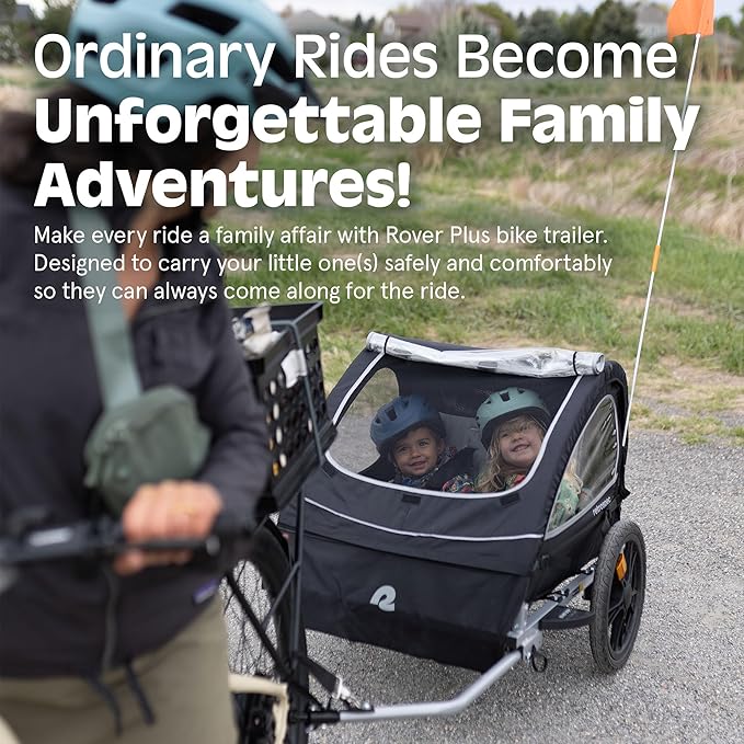 Retrospec Rover Plus Foldable Bike Trailer for Kids, Single/Double Passenger Child Bike Trailer with 5-Point Safety Harness, Reflective, Weather-Resistant Fabric and Safety Flag - Supports 40-80 lbs