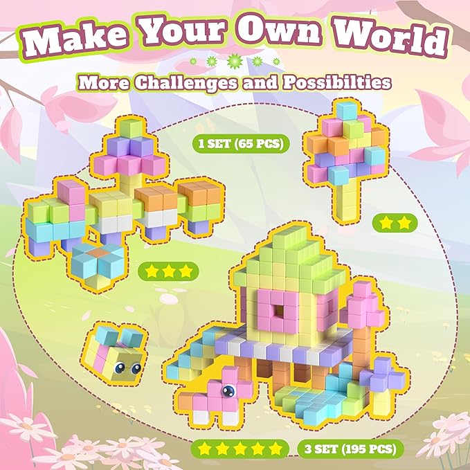 - 65 Pcs 1 inch Vibrant Magnetic Blocks Set: Spark endless creativity with our 65-piece set of 1 inch premium magnetic building blocks, featuring beautiful macaron colors for learning colors and shapes. This extensive set, ideal for kids ages 4-8, comes with a durable storage bag for easy cleanup and portability. Perfect for building everything from simple shapes to complex 3D models, it keeps kids engaged away from screens while fostering design skills and organizational habits