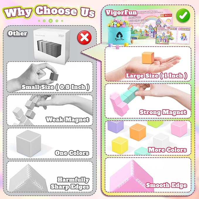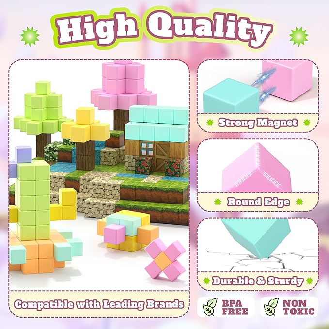 - Strong Magnetic & Cross-Brand Compatibility: Equipped with powerful embedded magnets, our blocks connect instantly and firmly for stable structures, supporting everything from suspension designs to creative models. They are fully compatible with other major magnetic tile brands, expanding creative possibilities and ensuring endless fun and learning as engaging magnet toys