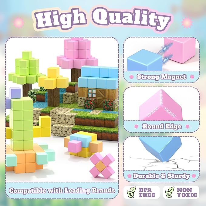 - Strong Magnetic & Cross-Brand Compatibility: Equipped with powerful embedded magnets, our blocks connect instantly and firmly for stable structures, supporting everything from suspension designs to creative models. They are fully compatible with other major magnetic tile brands, expanding creative possibilities and ensuring endless fun and learning as engaging magnet toys