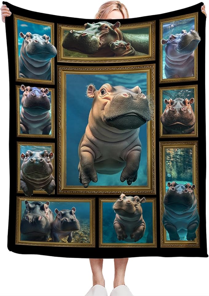 Hippo Throw Blanket - Ultra Soft Cozy Cute Fleece Fuzzy Plush Hippo Lovers Decor Gifts for Women Girls Adults - Couch Sofa 50"x40"