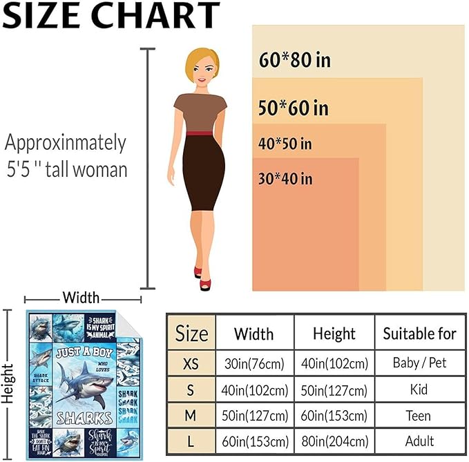 - Premium Flannel Fabric: Carefully selected flannel fabric ensures that the shark blanket is soft, comfortable and has excellent warmth retention. Our blankets can bring you warmth and give you a warm and comfortable experience