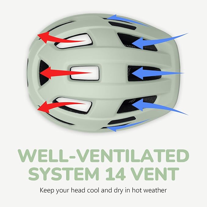 - Design with 14 air vents keep you cool during long-term cycling ride. We offer 2 set of breathable inner pads with insect net in front of cycling helmet which can be removed, wash to keep clean.