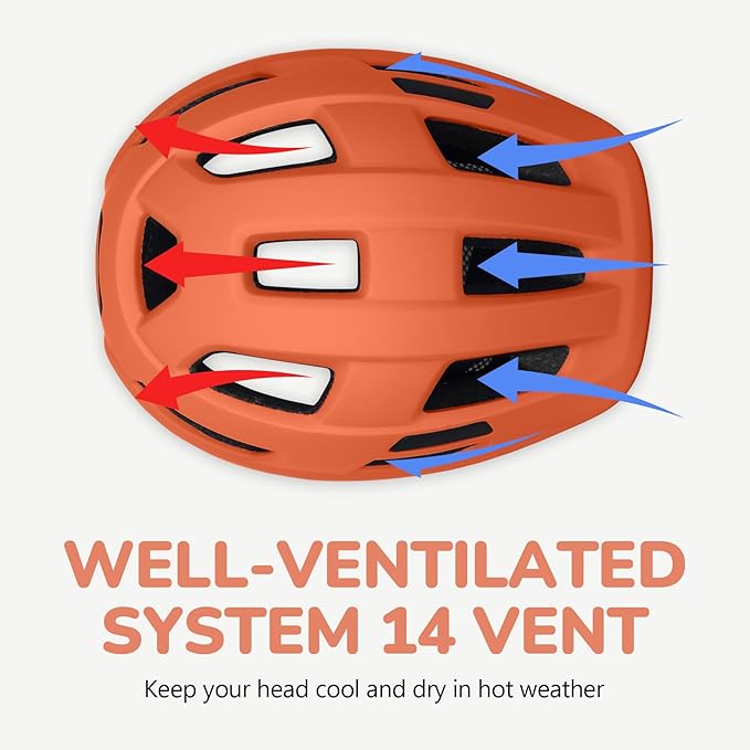 - Design with 14 air vents keep you cool during long-term cycling ride. We offer 2 set of breathable inner pads with insect net in front of cycling helmet which can be removed, wash to keep clean.