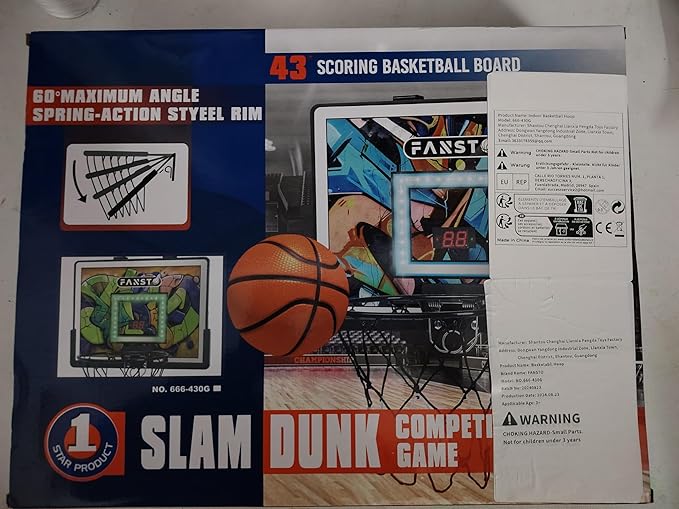- 【LET'S DUNK JUST LIKE THE PROS! 】This over the door basketball hoop features a spring-loading mechanism allows kids to enjoy dunking like the pros. The sturdy steel rim can withstand powerful slams without bending, while the impact-resistant frame ensures durability even during intense play. The hoop can tilt up to 60°, simulating the most realistic dunking experience. The indoor hoop is perfect for kids to develop motor skills and hand-eye coordination.