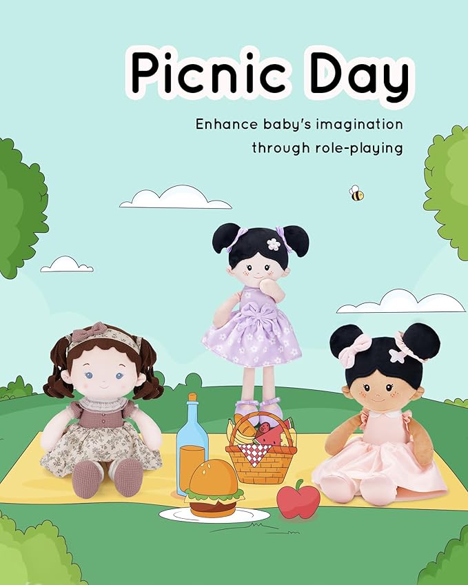 LeyaDoll Soft Baby Doll Toys (16''), My First Baby Rag Doll for 1 Year-Old Girl Birthday Gift, Christmas Plush Toys Gift for Toddler Kids Infants-Miss-Posy