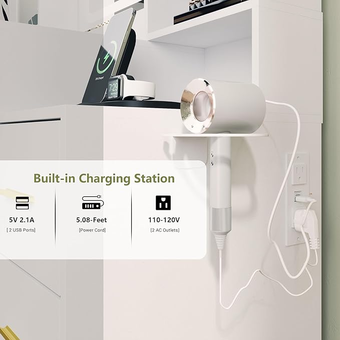 - Elegant and Functional Design: The modern design of this white vanity blends style with practicality. It’s a perfect addition to any bedroom or dressing room, designed to serve as a vanity desk with mirror and lights. Ideal for women, teens, and anyone seeking a touch of sophistication in their space.
