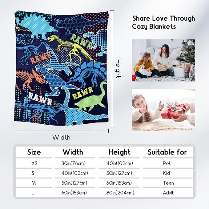 Dinosaur Blanket for Boys Girls, Dinosaur Gifts for Boys, 40"x50" Animal Blankets for Children, Kids Throw for Couch Sofa Office, Soft Fuzzy Cozy Girls Gifts Room Decor