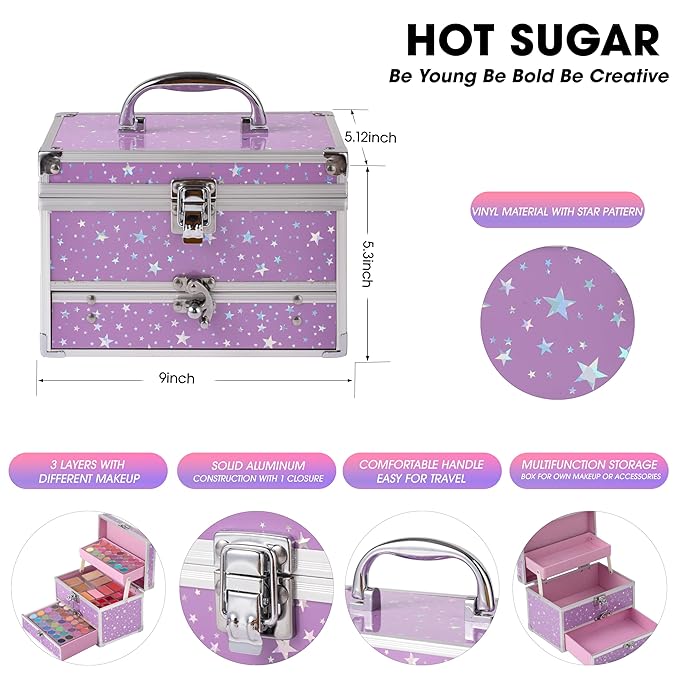 Hot Sugar Makeup Kit for Teens with Train Case, Portable Beginner Makeup Gift Set, Makeup Beauty Kit for Girls (Purple)