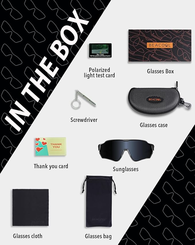 - EXQUISITE PACKING: You will get a pair of BEACOOL sunglasses, a hard and exquisite protective case, a cleaning cloth, a pouch and a small sunglasses screwdriver. Fashion and styling sunglasses, perfect for sport and outdoor activities lovers