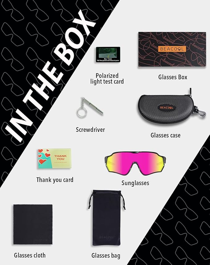 • EXQUISITE PACKING: You will get a pair of BEACOOL sunglasses, a hard and exquisite protective case, a cleaning cloth, a pouch and a small sunglasses screwdriver. Fashion and styling sunglasses, perfect for sport and outdoor activities lovers