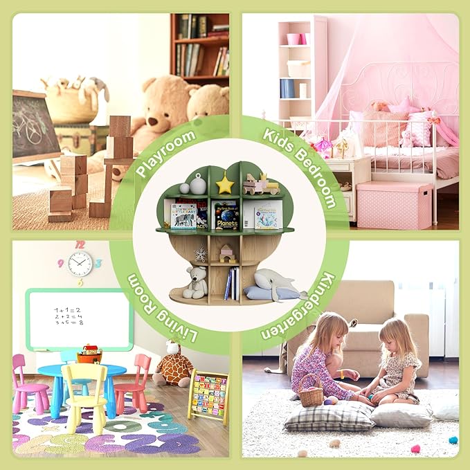 - Kids Bookshelf with 4-Tier Diversified Storage Shelves: This natural wood tree bookshelf for kids is designed for different kinds of book, toy, decoration storage. This natural wood tree nursery bookshelf with ample storage space and open reading shelves fosters an organized and pleasant play and reading area at the same time promoting your little ones’ reading habits and tidiness. The baby bookshelf adopts a tree shape and natural wood veneer that not boosts the visual appeal but will be great addition to kids’ bedroom, playroom, reading room, nurseries, living room, kindergarten, etc.