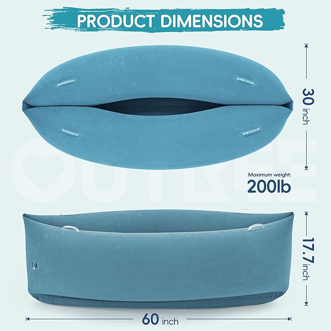 - SAFE AND STURDY: We reinforced the bean bag connections,making them resistant to tearing. 60''L x 30''W x 17.7''H,maximum weight capacity: 200 lbs.