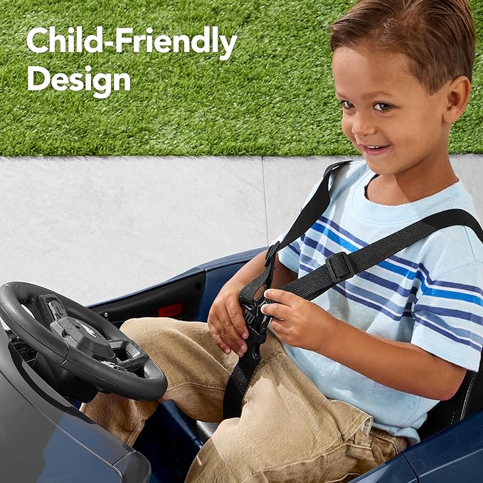 - CHILD-FRIENDLY DESIGN: Made to seat one child, this ride-on includes an adjustable seat harness to secure your child while in motion, treaded plastic wheels, LED headlights, and 2 driving speeds to suit your child's needs