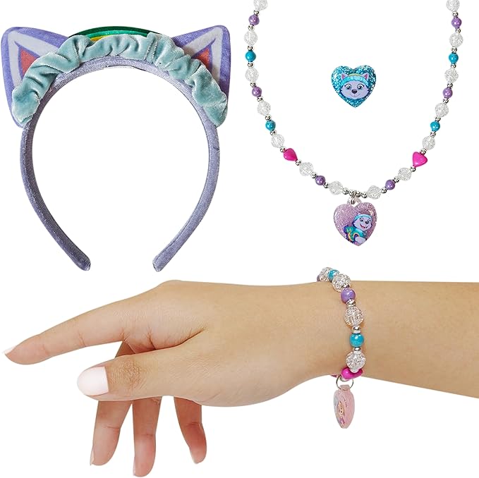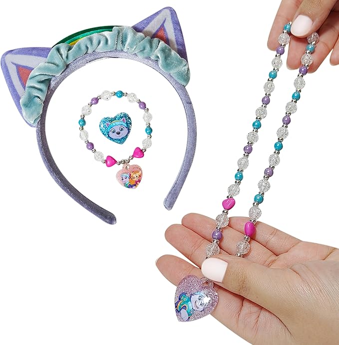 LUV HER Licensed PAW PATROL Headbands for Girls - Kids Jewelry - Dress Up Set All in one Giftable Box - Headband - Play Jewelry Set - 4pc (Toddler Headband, Necklace, Dress Up Bracelet, Ring) Ages 3+