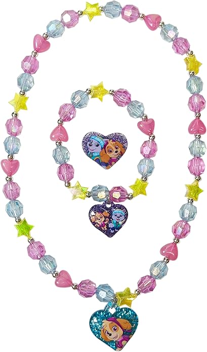 LUV HER Paw Patrol Girl's Jewelry Set - Dress up Toy Jewelry Box Set with Bead Necklace, Bracelet and Ring - Play Accessories - Ages 3+