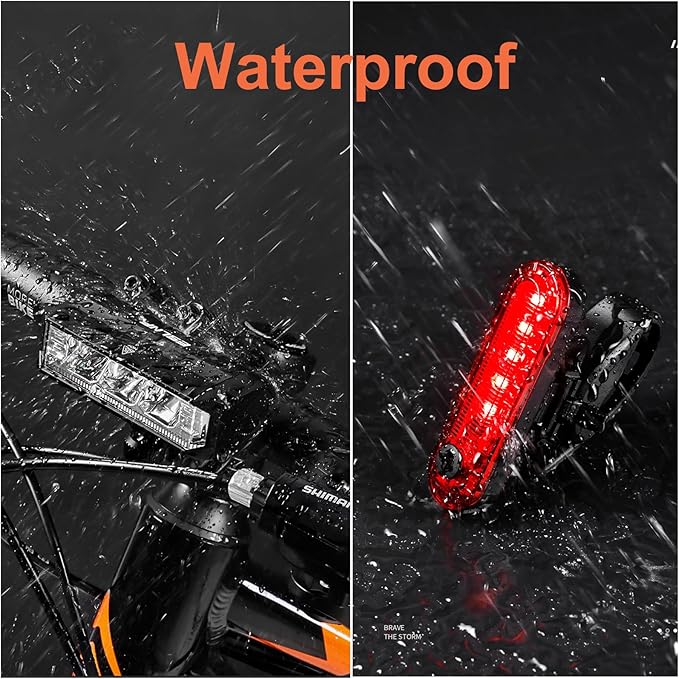 - 4. Waterproof Construction: The waterproof bicycle light with a waterproof rating of IPX5, you can rest assured to use it in rainy or snowy conditions