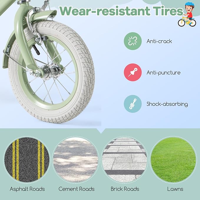 - [ Smooth & Safe Riding Experience ]: The anti-crack and wear-resistant tires ensure a smooth and steady ride on asphalt roads, cement roads, brick roads, and lawns. 2 detachable training wheels help beginners keep balance and pedal independently. The front and rear reflectors included in 16" & 18" bikes take an important role to keep kids visible when they ride at night.