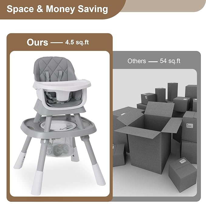 - 【15-in-1 Convertible Baby High Chair】Our multifunctional high chair can be easily converted into 15 different modes, including a full-size baby highchair, booster seat, activity center with toys, building block table and chair set, toddler chair, child stool and more. It grows with your little one, from 6 to 72 months, meeting developmental needs and providing long-term value, while also saving your money and space.