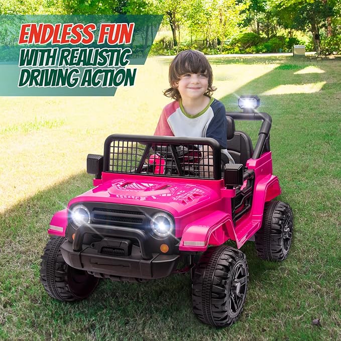 JOYMOR 12V Kids Ride on Truck with Remote Control, 4 Wheels Battery Powered Kids Car, Electric Play Car with LED Lights/Horn/Remote and Manual Control/3-5 MPH Speed/Gift for Girl Boy (Hot Pink)