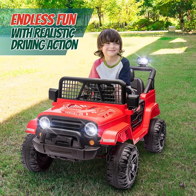- Realistic Driving Experience: Just need to turn on the power, choose forward/ reverse gear, then step on the accelerator with operating the steering wheel, this 12v ride on car is easy to drive. Perfect to give your kids a realistic behind-the-wheel experience.