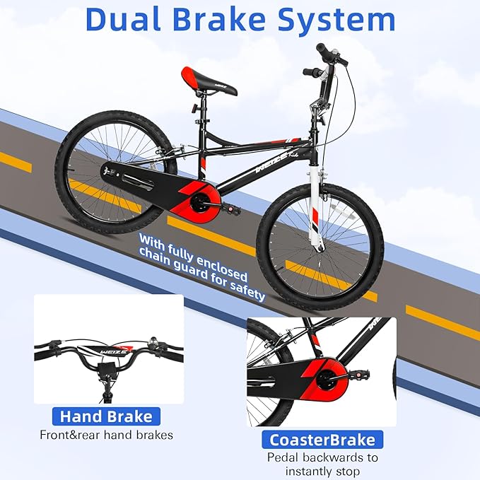 - 【Size Recommend】: 20" bike for 6-12 years (48"-62") boys & girls. Note: Measure kid’s INSEAM and compare with SADDLE HEIGHT to check if the rider can touch the ground.