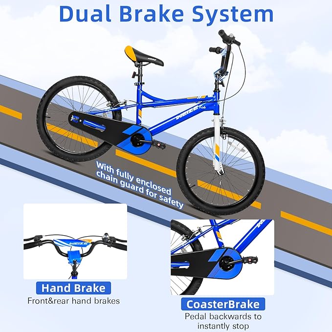 - 【Size Recommend】: 20" bike for 6-12 years (48"-62") boys & girls. Note: Measure kid’s INSEAM and compare with SADDLE HEIGHT to check if the rider can touch the ground.
