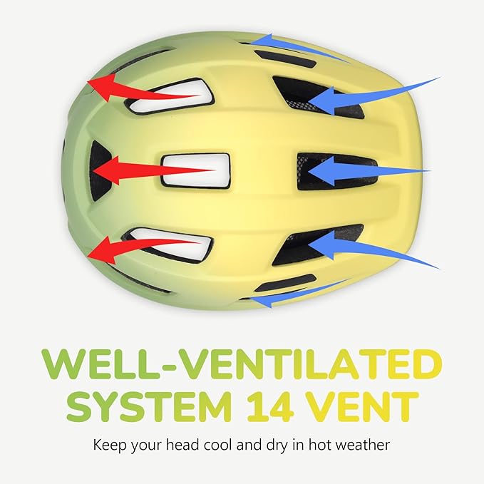 - Design with 14 air vents keep you cool during long-term cycling ride. We offer 2 set of breathable inner pads with insect net in front of cycling helmet which can be removed, wash to keep clean.