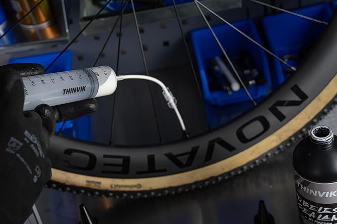 Thinvik Tubeless Tire Sealant 500ML/16.9oz No Puncture Hassle and Leak Prevention for Road Bike MTB CX and Gravel Bicycle Tubeless Tyres Sealant Injector Set/500ML(Single)