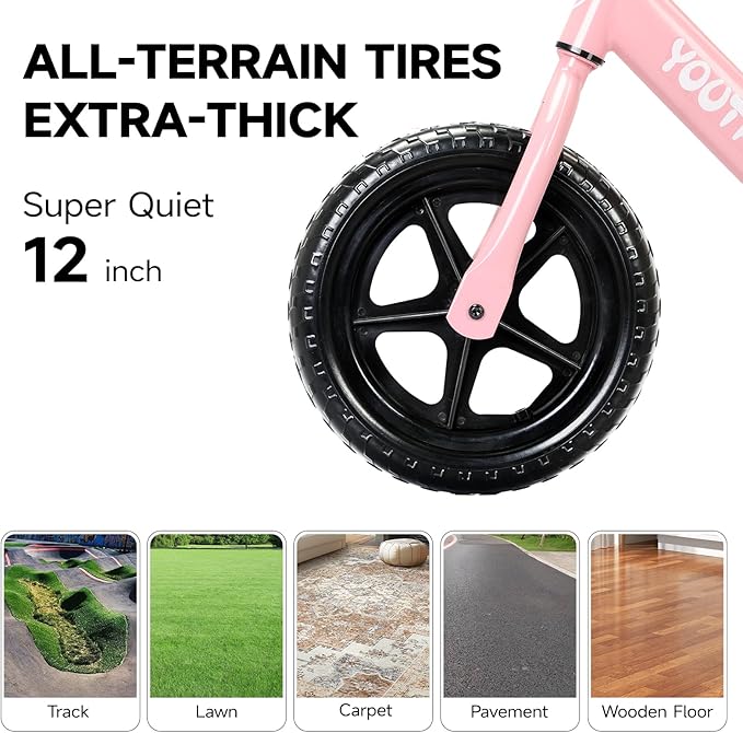 - Durable & Reliable Construction - Weighs Up to 110 Lbs.Built to last, the balance bike features a high-quality, robust frame that can withstand everyday wear and tear. Its sturdy design handles bumps, falls, and rough terrain with ease, ensuring long-lasting durability for endless adventures.
