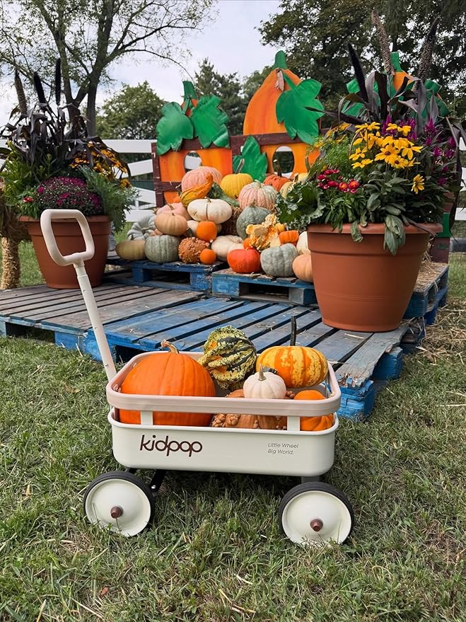 kidpop PULA-Wild 3-in-1 Kids' Pull-Along Wagon Toddlers Push Walker for 2.5-8, Removable Wooden Cover and Adjustable Handlebar, Birthday Gifts Max Weight 33 lbs (White)