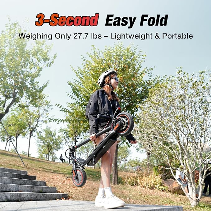 - 【Compact, Portable Design】Fold this lightweight electric scooter for adults in seconds. At just 27.7 lbs, it’s easy to store in a car trunk, take on public transit, or carry around campus