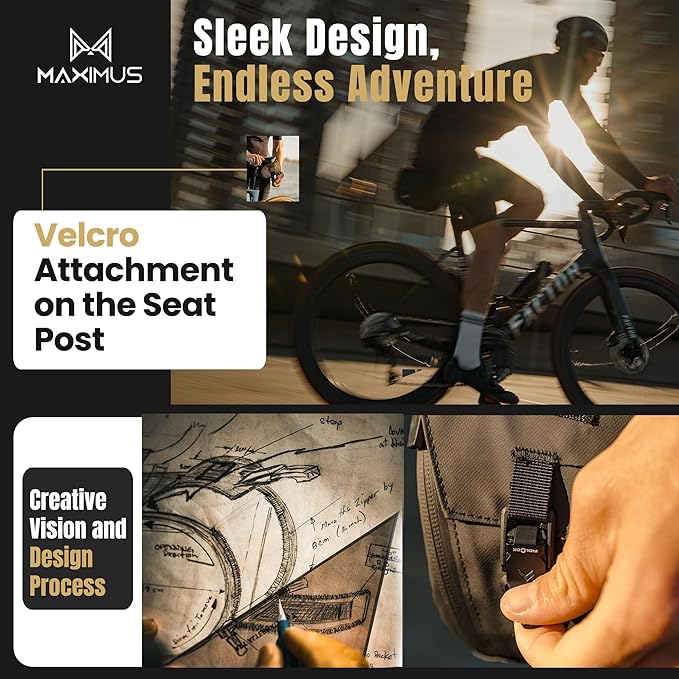 - Aerodynamic Design for Minimal Drag: The Maximus bike saddle bag is engineered with an aerodynamic shape that reduces wind resistance, ensuring smooth rides without slowing you down. Perfect for cyclists who prioritize both storage and performance in their bike seat bag.