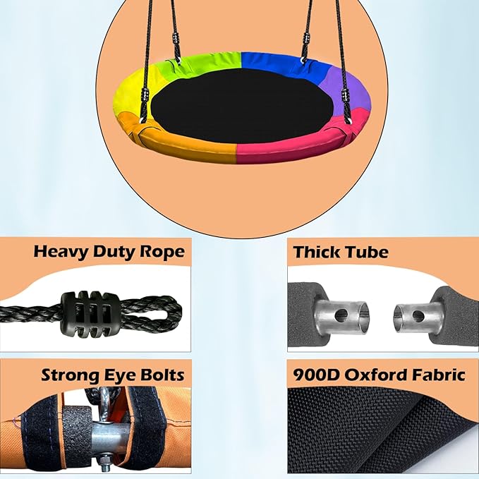 40" Saucer Tree Swing for Kids - 500Lb Weight Capacity, Waterproof Platform Swing Seat with Adjustable Ropes for Kids Playground Outdoor Activity Backyard Fun (Color)