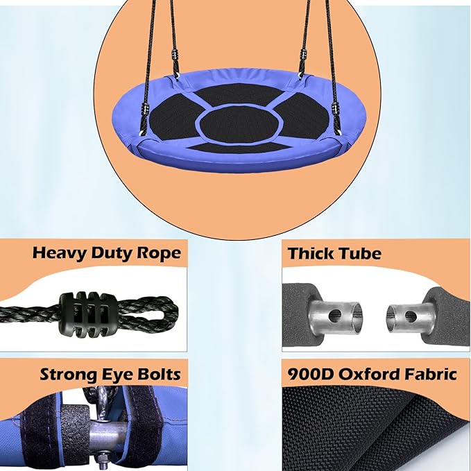 - Large circular swing: The Saucer tree swing has a diameter of 40 inches and enough space for your child and their friends to play together.