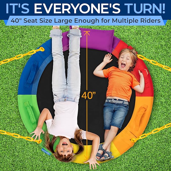 SereneLife 40" Saucer Swing - Outdoor Swing Set with Heavy-Duty Chains & Hanging Kit, Swinging Seat Spinner with Pillow & Carry Bag, Weatherproof, Water-Resistant, Supports Up to 700 lbs, Rainbow