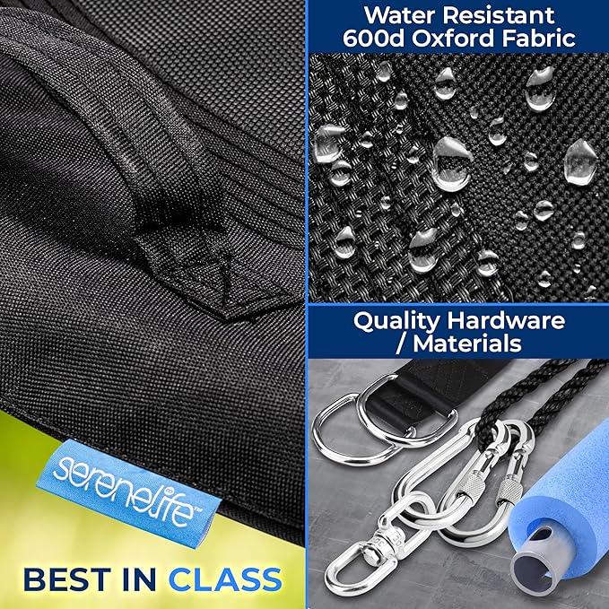 SereneLife 40" Saucer Swing - Outdoor Swing Set with Universal Hanging Kit, Swinging Seat Spinner with Pillow & Carry Bag, Weatherproof, Water-Resistant, Supports Up to 700 lbs, Black