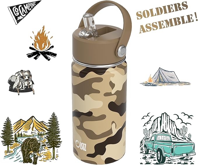 OISIZ Kids Water Bottle with Straw Lid 14oz, Vacuum Insulated 316 Stainless Steel Water Bottles for Kids for School, Leakproof Water Bottle, BPA Free and Keep Cold for 24 Hours