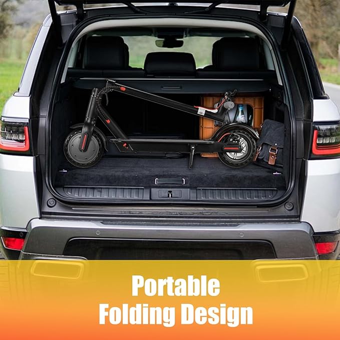 - 【E Scooter for Adults: Foldable Design】The foldable feature of this electric scooter allows for easy storage and transportation. Effortlessly fold and carry your electric scooter wherever you go, making it a convenient and portable mode of transport. Convenience is key, and the foldable design makes it easy to carry when not in use or when navigating crowded spaces. It’s the perfect companion for your on-the-go lifestyle.