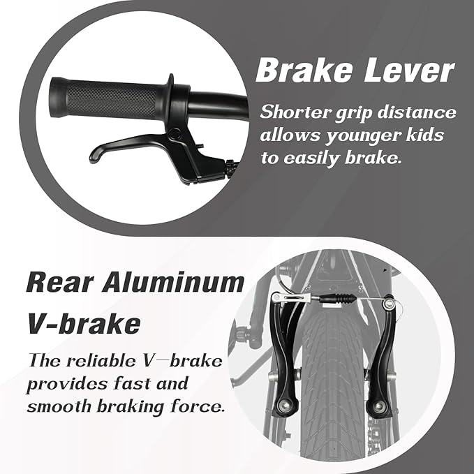 - 【Child-Safe Braking System】 Features an easy-to-use coaster brake and rear v-brake perfect for small hands, a half chain guard for safety, and wide tires for slip-resistant traction.