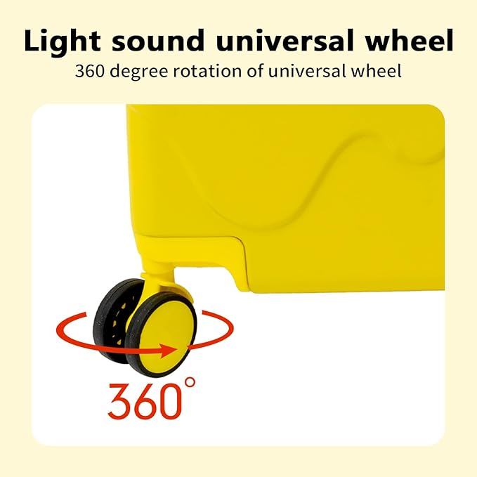 - 【Humanization design】: The ride on luggage is equipped with a built-in combination lock, the height of the trolley bar can be adjusted by gently pressing the trolley bar button, the concave curve design on the top is more in line with the human body structure, the rounded corners and smooth edges make it more comfortable and safer for the child to ride on, and it is not easy to fall down.